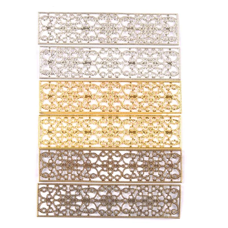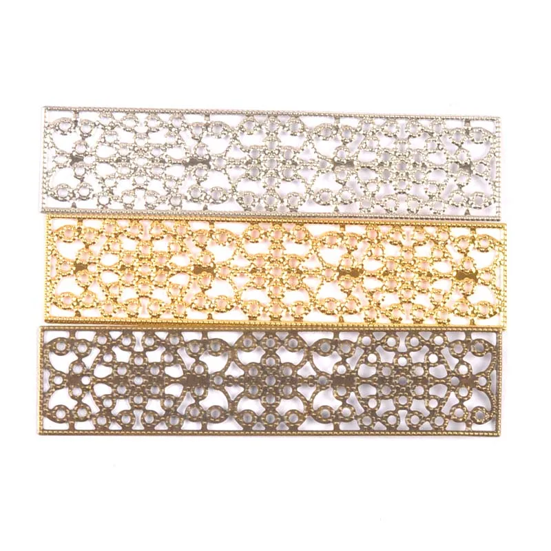 10 шт. прямоугольные винтажные Цветочные соединители филигранные Обертывания DIY ювелирные изделия золотые/серебряные/бронзовые металлические украшения для дома