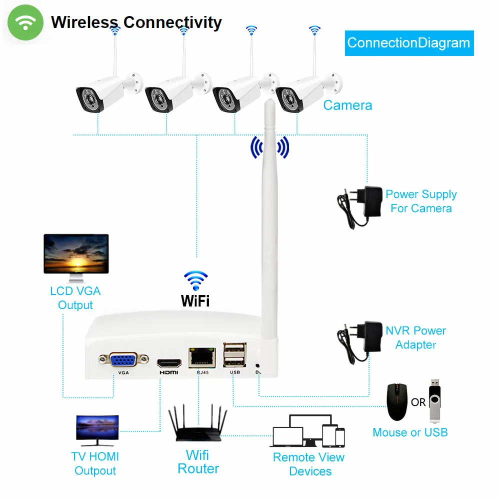 Камера оснащена беспроводным, автоматическим подключением, подключением и воспроизведением, нет необходимости в кабеле от камеры s к NVR. DIY ваша система безопасности легко.