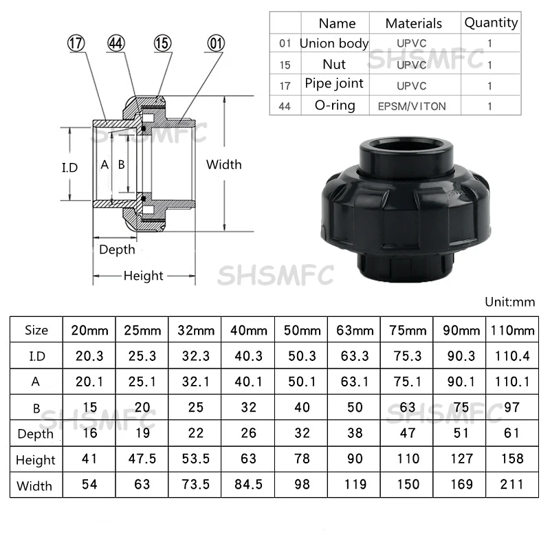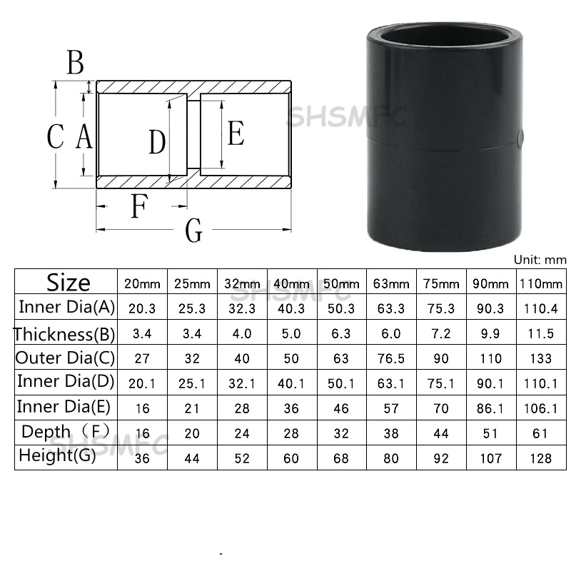 Примечание: размер трубы из ПВХ-это наружный диаметр, а другие продукты-внутренний диаметр