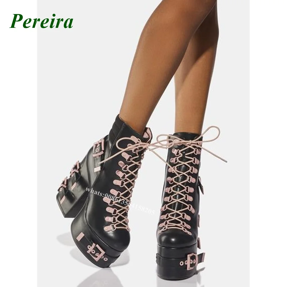 Основная информация о обуви: черные ботинки на платформе с перекрестной шнуровкой; Новинка 2022 года; Дизайнерские женские ботинки на высоком каблуке с круглым носком, ремешком и пряжкой, на шнуровке; Сезон весна