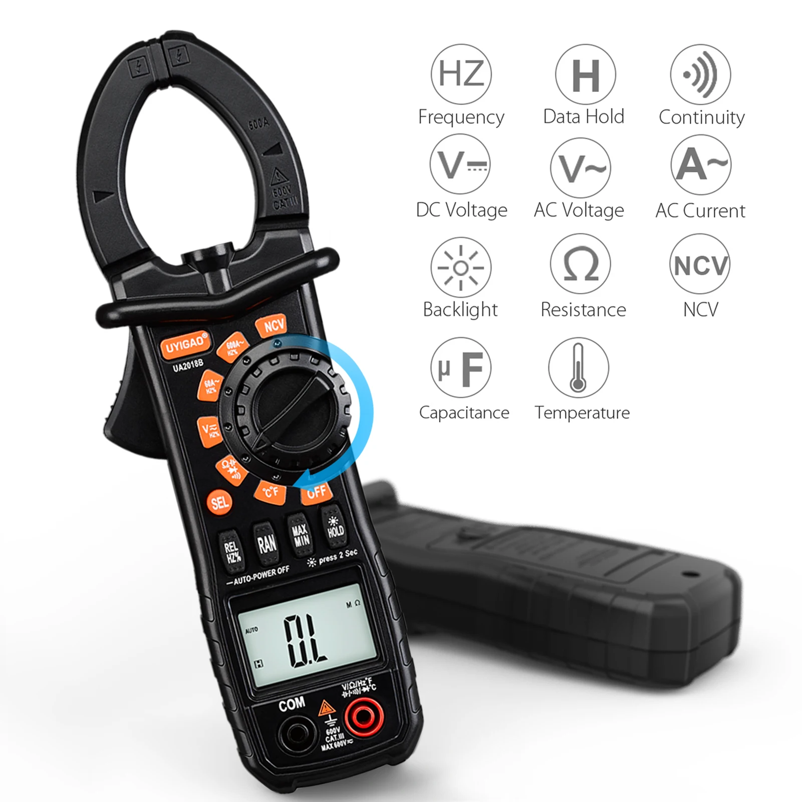 Легко использовать и читать с большим ЖК-экраном: маленький и портативный для переноски и использования. Высокое разрешение и индикация низкого заряда батареи. Фонарик получает доступ к удобному измерению переменного тока в темноте. Хранение данных, Автоматический диапазон и автоматическое отключение питания.
