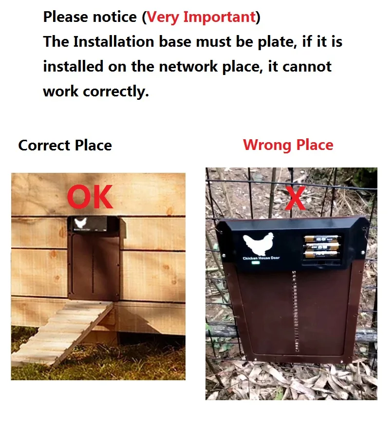 ЭТОТ автоматический Открыватель двери для курятника удивит вас своей водонепроницаемой функцией, прочным дизайном, датчиком на светильник, сроком службы аккумулятора 4-6 месяцев, который работает в нормальных условиях, простым пользовательским интерфейсом и, самое главное, светильник с датчиком, который заботится о том, чтобы ваши куры были в безопасности ночью и были свободны в дневном светильник.