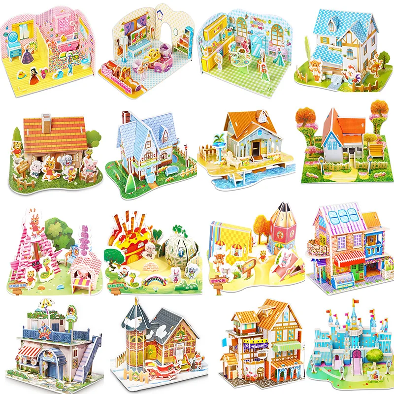 3D Пазлы для детей замок Монтессори развивающие игрушки сад принцесса домик деревянная головоломка интересные обучающие игры для детей