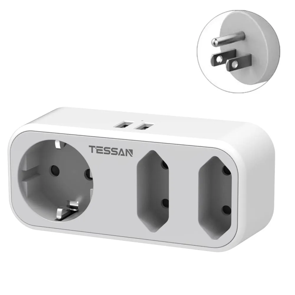 TESSAN адаптер для путешествий переходник стандарта США, Америки, Германии с 2 USB 2,4 А, 3 гнезда адаптер для путешествий адаптер питания для Канады, Таиланда, Мексики настенное зарядное устройство зарядная станция, адаптер США