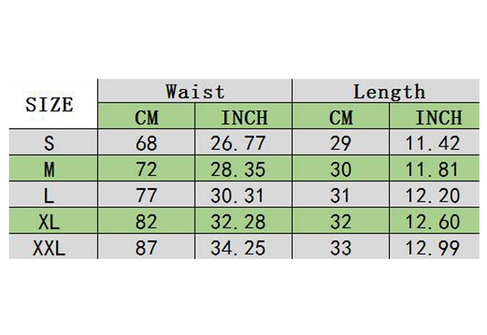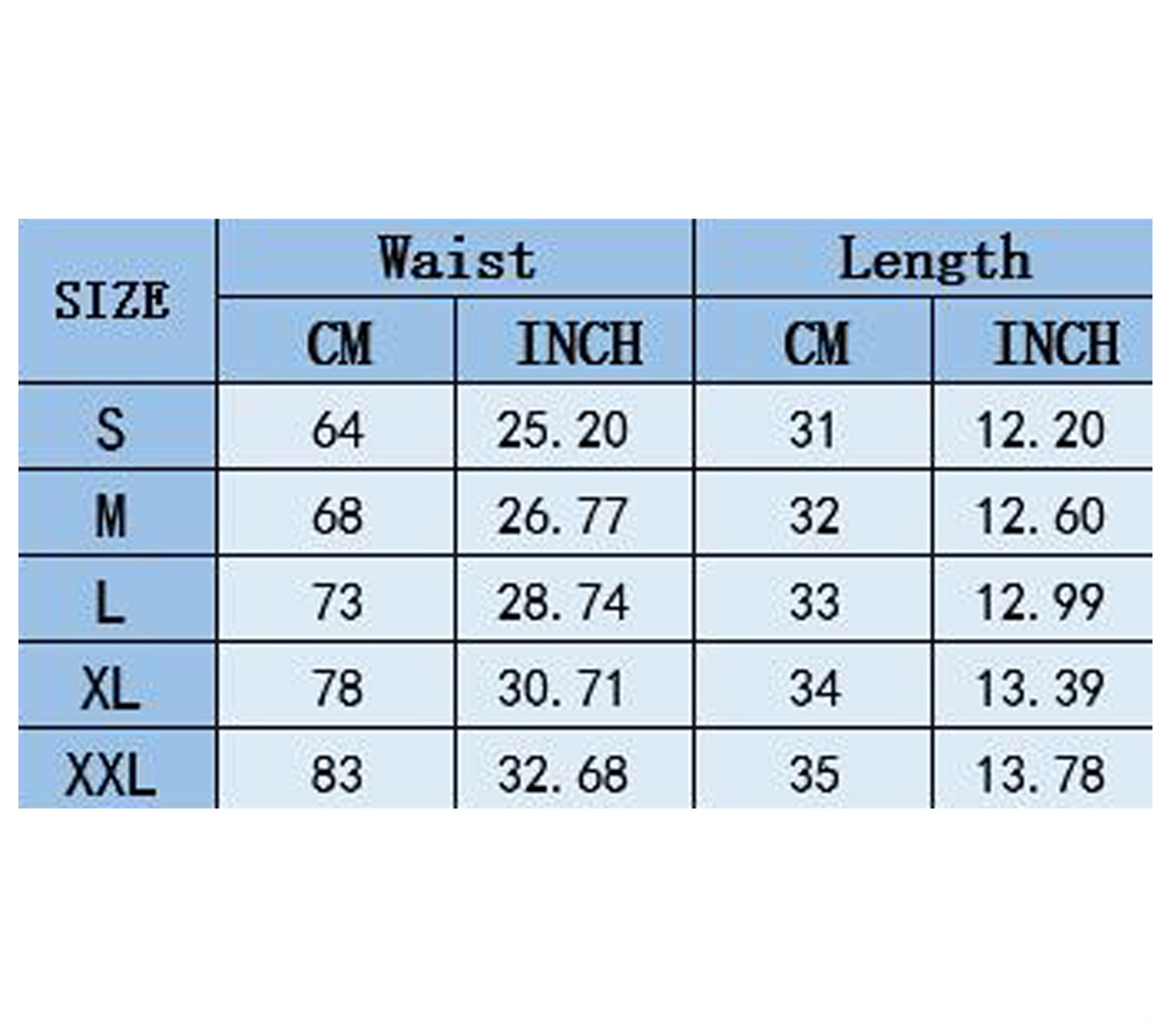 Размеры Американский размер Размер Великобритании Европейский размер Талия Длина S 2-4 6-8 32-34 64 см/25,20'' 31 см/12,20'' М 4-6 8-10 34-36 68 см/26,77'' 32 см/12,60'' L 6-8 10-12 36-38 73 см/28,74'' 33 см/12,99'' XL 8-10 12-14 38-40 78 см/30,71'' 34 см/13,39'' XXL 10-12 14-16 40-42 83 см/32,68'' 35 см/13,78'' Размер: S Размер США: 2-4 Размер Великобритании: 6-8 Европейский размер: 32-34 Талия: 64 см/25,20 дюйма Длина: 31 см/12,20'' Размер: M Размер США: 4-6 Размер Великобритании: 8-10 Европейский размер: 34-36 Талия: 68 см/26,77 дюйма Длина: 32 см/12,60'' Размер: L Размер США: 6-8 Размер Великобритании: 10-12 Европейский размер: 36-38 Талия: 73 см/28,74 дюйма Длина: 33 см/12,99'' Размер: XL Размер США: 8-10 Размер Великобритании: 12-14 Европейский размер: 38-40 Талия: 78 см/30,71 дюйма Длина: 34 см/13,39'' Размер: XXL Размер США: 10-12 Размер Великобритании: 14-16 Европейский размер: 40-42 Талия: 83 см/32,68 дюйма Длина: 35 см/13,78''
