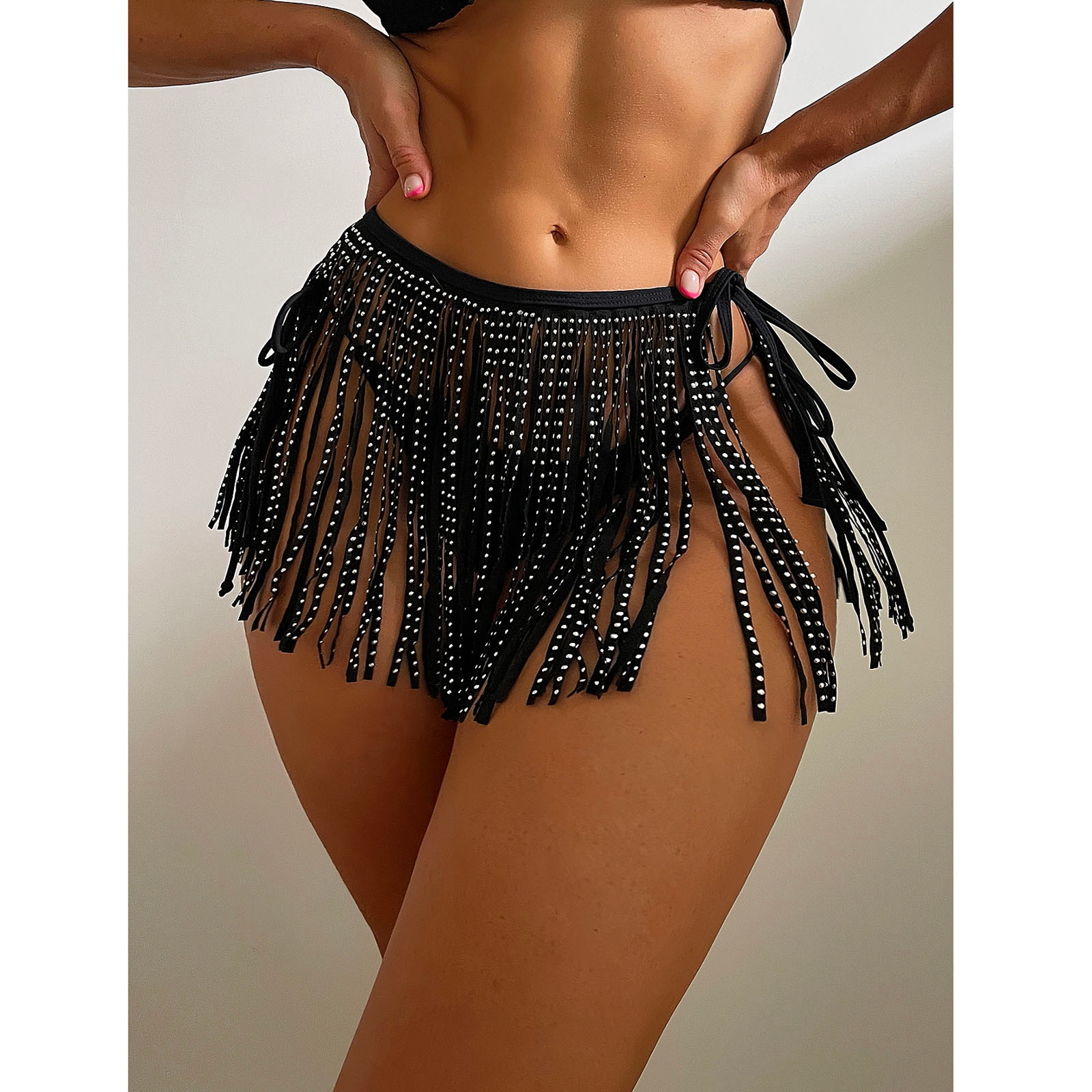 1 шт., пляжная юбка, накидка, сексуальное бикини, обёрточная юбка, женская накидка для плавания, кисточка, бахрома, Прозрачная Юбка, однотонная, модная юбка