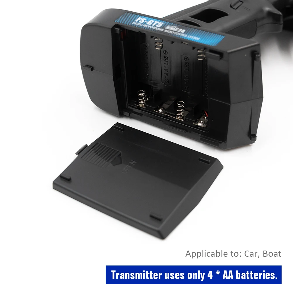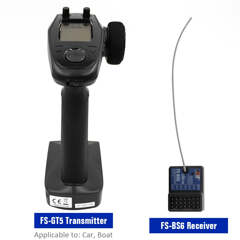 GT5 передатчик с использованием 2,4 ГГц AFHDS 2A системы, при сильных активных и пассивный rfid защита от помех. С FS-BS6 приемником, выход 6 каналов, совместимые модели автомобилей, лодок и других моделей.