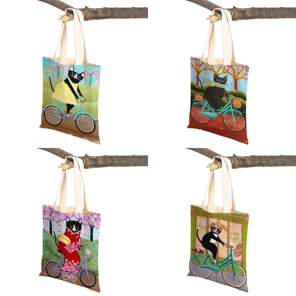 Милая мультяшная Сумка-тоут для велосипеда с изображением кота, мультяшная сумка для домашних животных, складная тканевая многоразовая сумка через плечо для покупок