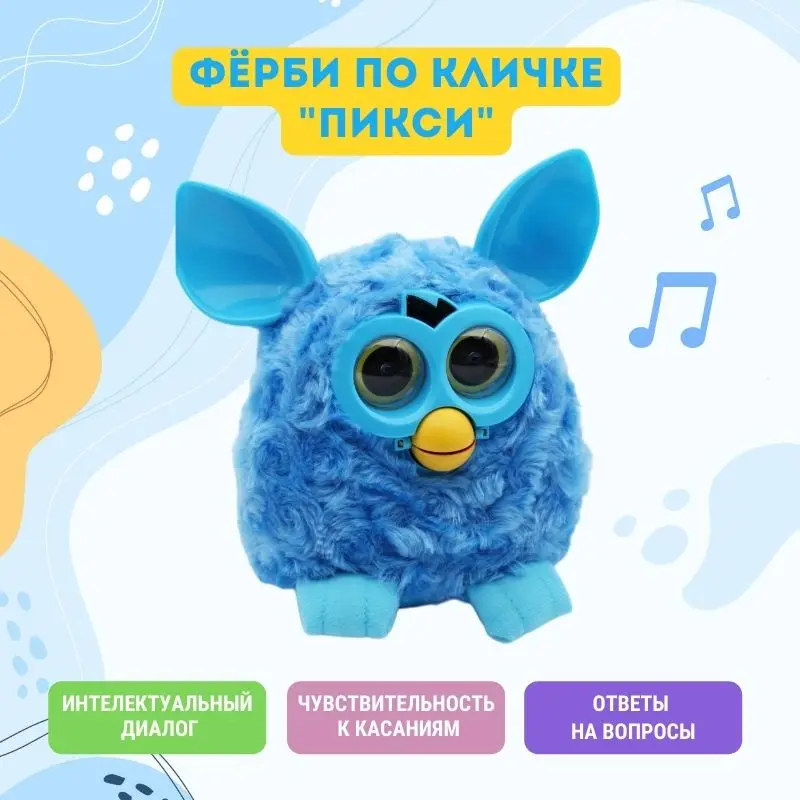 Именно такое имя в 1998 году получил забавный и милый пушистый зверек, ставший одной из самых продаваемых игрушек в мире. За прошедшие годы, выпущено несколько серий интерактивной игрушки, последняя из которых максимально приблизила Фёрби к статусу самого настоящего домашнего любимца. Все это благодаря тем функциям и возможностям, которыми разработчики наделили свое плюшевое изобретение. Данная игрушка - помощник в развитии у ребенка визуального, слухового и осязательного восприятия. Очень милый домашний питомец, который всегда поддержит разговор, споет песенку или расскажет сказку. Малыш будет рад иметь у себя такого друга, ведь с ее помощью ребенок не только сможет развлечь себя, но и улучшит свои коммуникативные навыки. Интерактивная игрушка Фёрби по имени Пикси повторяет фразы, реагирует на прикосновения речью или движениями.