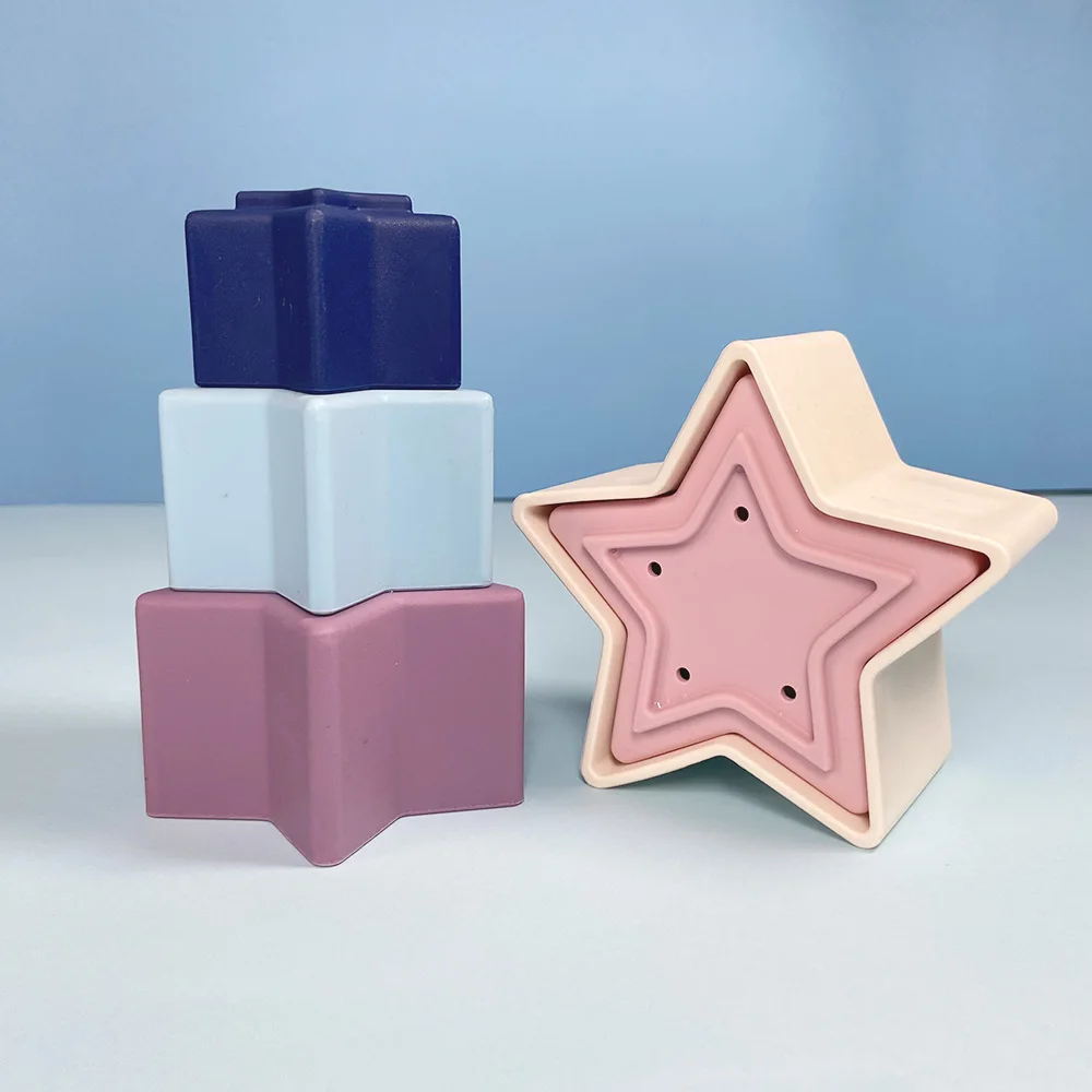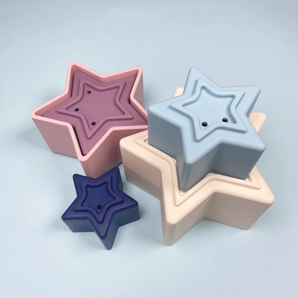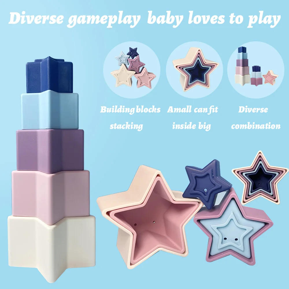 1 набор, силиконовые игрушки для укладки, Детские Прорезыватели, мягкий строительный блок, звездная ванна, Ранняя развивающая башня Монтессори, подарок для новорожденных, детская игрушка