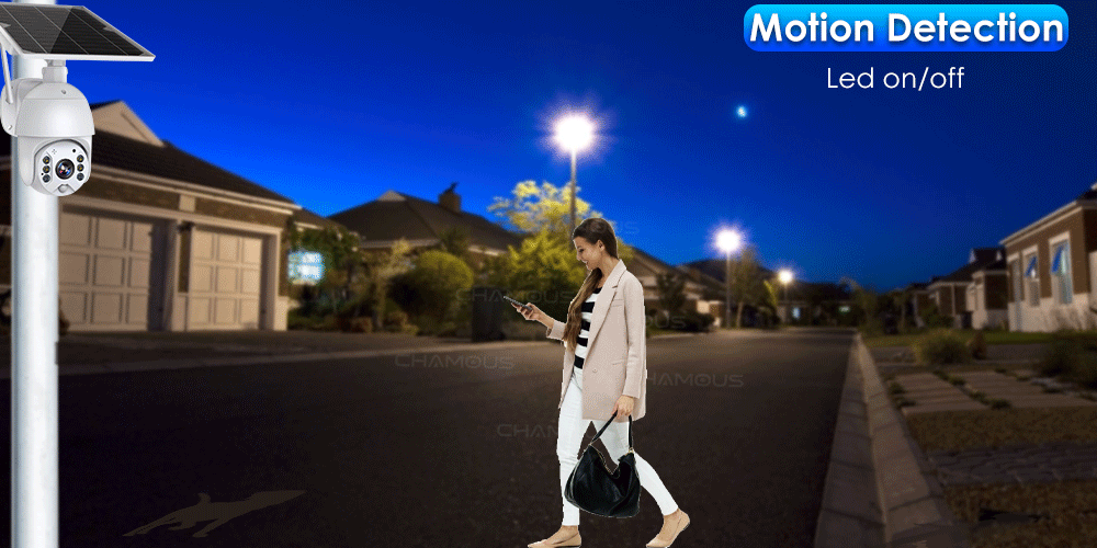 * Когда человек или животные попадают в зону движения, камера безопасности быстро проснется и начнет движение