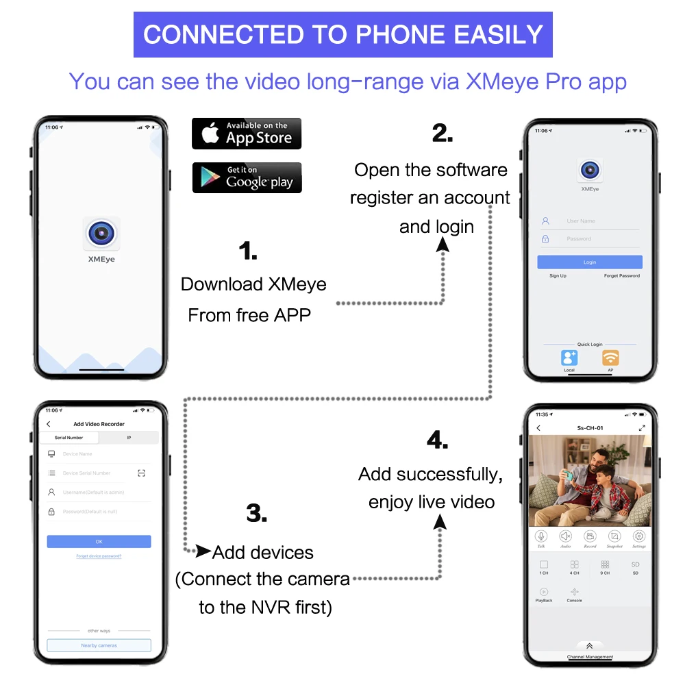 Простая настройка, всего 4 шага для просмотра мобильный телефон (Android и iPhone iOS)