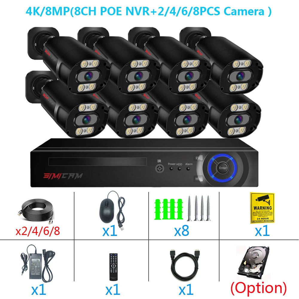 1. Наша новая система камеры 4K POE. 8-канальный NVR дизайн, поддержка подключения до 8 шт камер, вы можете купить SIMICAM ip-камеры с питанием по POE для расширения вашей системы видеонаблюдения.