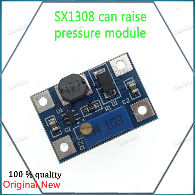 SX1308 бустер-модуль с чипом SX1308, его упаковка небольшая и высокая эффективность. Выходная мощность может быть отрегулирована, максимум может прибыть 28 в и его внутренняя интеграция с самым низким RDS внутренним сопротивлением 100 м ом оксид металла полупроводниковый полевой эффект транзистора (mosfet), который может реализовать большой выходной ток до 2 А. Он широко используется в 3G сетевых продуктах, цифровых продуктах, мобильном источнике питания, блоке питания батареи, оборудовании и т. д.