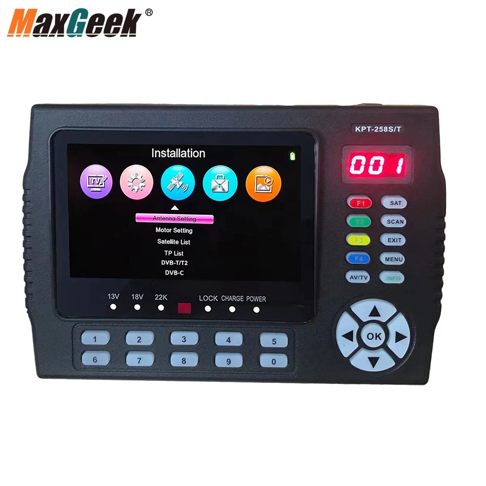Maxgeek KPT-258S/T Цифровой спутниковый Finder метр & HD для контроля уровня сахара в крови с 4,3 "IPS (S2 + T2 + C комбо + HD + AV)