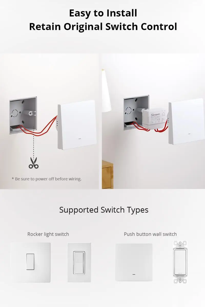 【Двухстороннее управление 】 установив ZBMINI-L в один из ваших существующих двух-или многопозиционный узел управления коробками, чтобы сделать подключенный светильник умным.