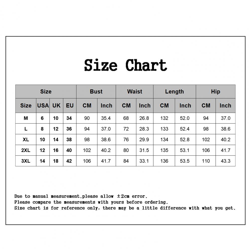 Размер: 3XL, обхват груди: 106 см/41,7 дюйма, длина: 136 см/53,5 дюйма, обхват талии: 84 см/33,1 дюйма, обхват бедер: 110 см/43,3 дюйма (приблизительно)