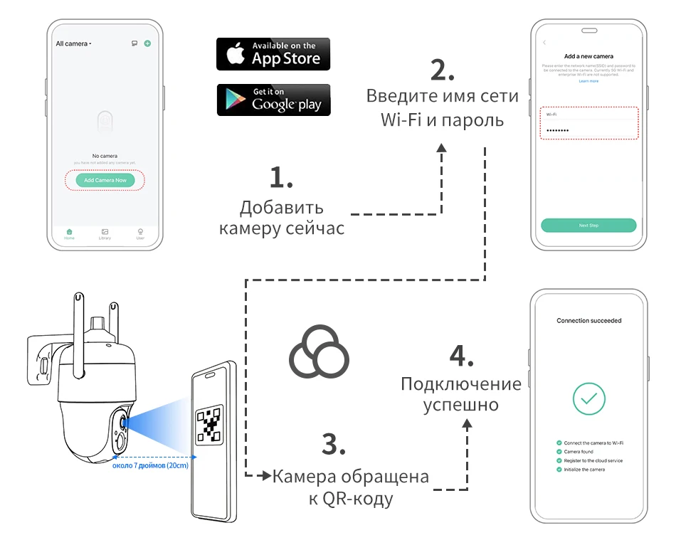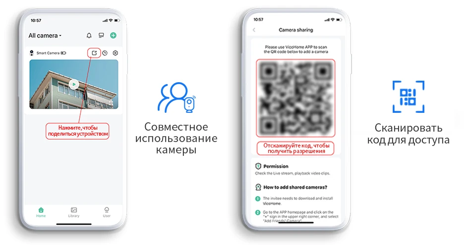Семья и друзья могут быстро и легко отсканировать код, чтобы получить доступ к камере.