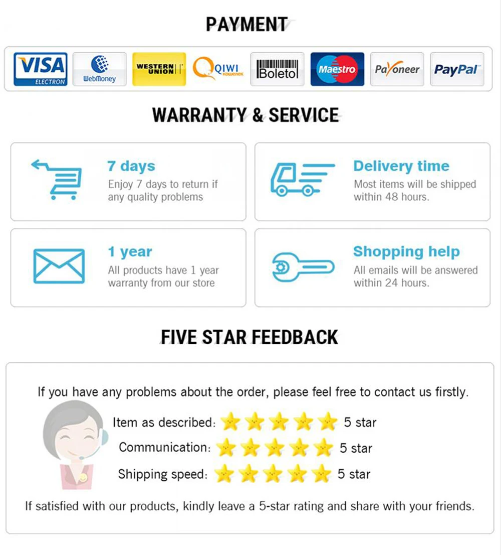 5. Если товар неисправен, пожалуйста, сообщите нам в течение 7 дней после его получения.