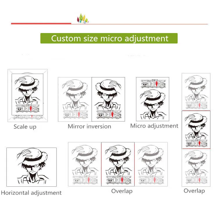 Равное масштабирование, разворот узора зеркала, тонкая настройка узора, горизонтальная версия тонкой настройки, левый и правый перекрытие, сверху и снизу перекрытие, пользовательские чертежи подчиняются дизайну