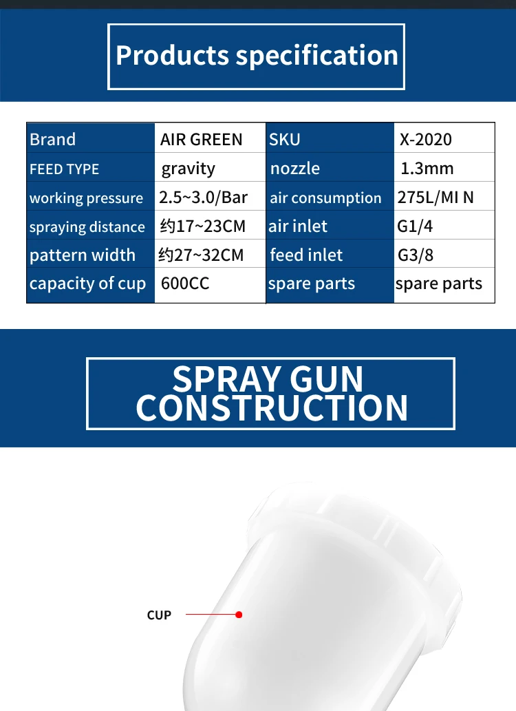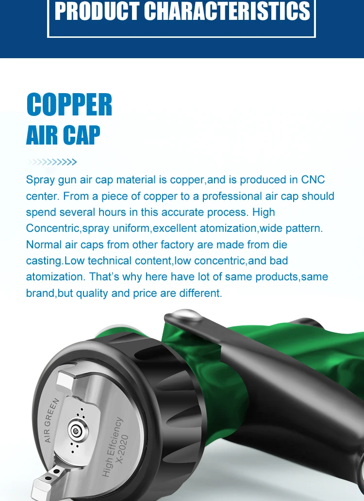 Производитель, распылитель для окраски автомобиля, воздушный зеленый, профессиональные автомобильные инструменты HVLP X-2020 LVMP, прозрачные пальто, размер сопла 1,3 мм