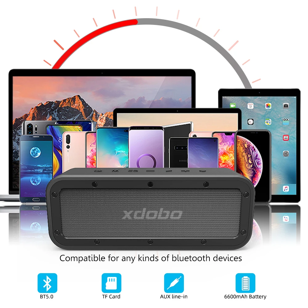 XDOBO Wake 1983 Портативный Bluetooth Динамик BT5.0 IPX7 Водонепроницаемый сабвуфер супер бас туры Беспроводной стерео аудио оборудование