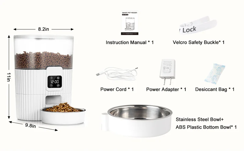 【Автоматическое обслуживание домашних животных 】 более здоровое планирование еды для вашего маленького ребенка. Ваш питомец может получать нужное количество пищи каждый день через кормушку для домашних животных. Кормушка для кошек является хорошим помощником, который заботится о вашей кошке/собаке, когда вы заняты работой по сну или путешествием! Больше никаких предрассветных звонков или чрезмерных беспокойств при сверхурочной работе в ночное время и путешествиях.