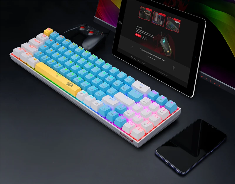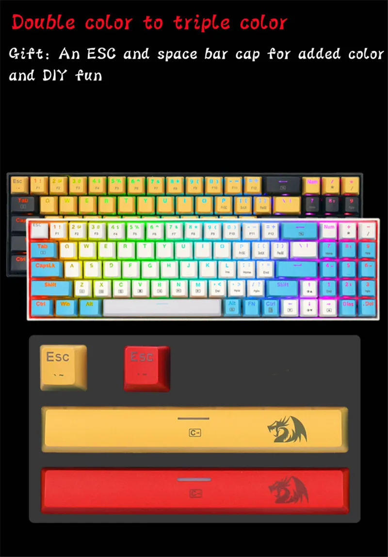 Красочные колпачки для ключей, изготовленные из уникальных и высококачественных прочных двухкамерных колпачков, K688 механическая клавиатура имеет отличный сенсорный опыт и долгое время службы. Красочные колпачки для ключей могут подарить более приятное настроение во время игр или работы, украсить ваше пространство и улучшить вашу жизнь.