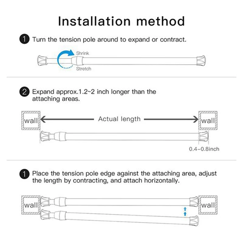 [Область] подходит для ванной комнаты, душевой кабины, ванной, зоны для переодевания, шкафа, окна и многое другое. Достаточно прочные, чтобы держать занавески для душа, оконные шторы, одежду и другие предметы.