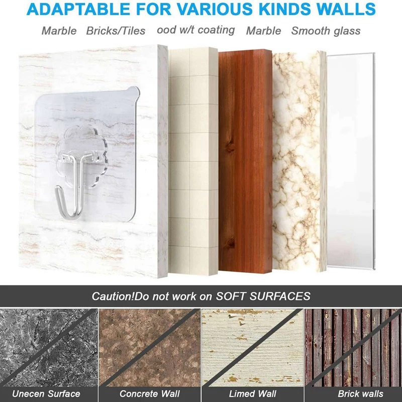 1. Прозрачный и бесшовный дизайн: прозрачное основание делает бесшовный липкий крючок почти невидимым, и после удаления он не оставит следов клея.