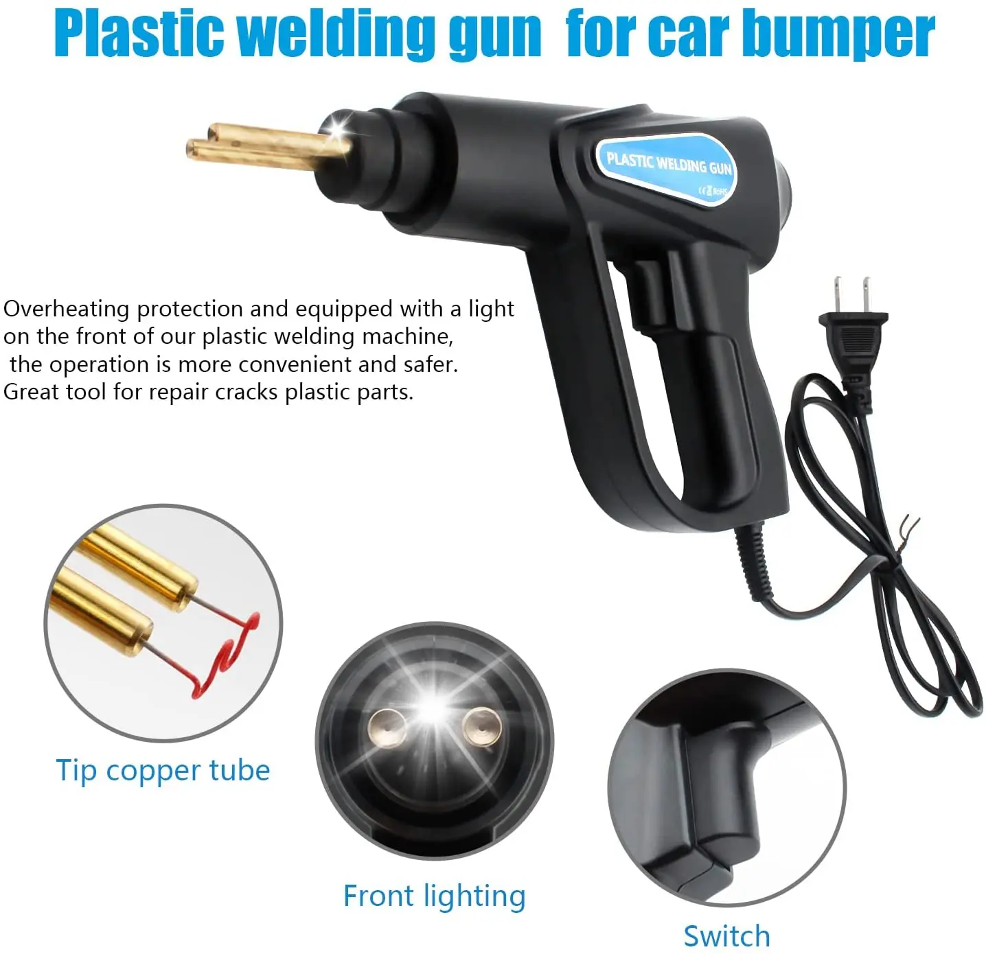 【Perfect Repair permance】он может термически резать или растворять растворимые материалы, Ремонт по крайней мере 98% пластмасс на рынке. Идеально подходит для ремонта: бампер, приборная панель, держатель лампы, пластиковое кольцо, радиатор, спойлер, ручки, фары, Пластиковые крылья, автомобильное и мотоциклетное пластиковое устройство и т. Д. С сильным прочным ремонтом, сохраняя пластиковую гибкость.
