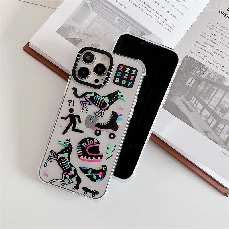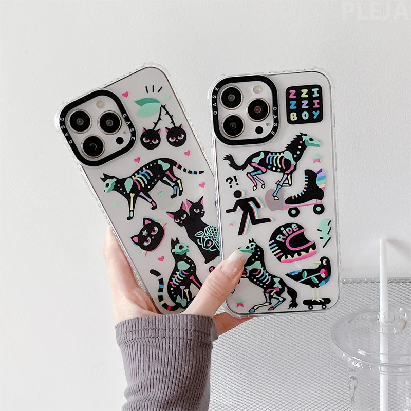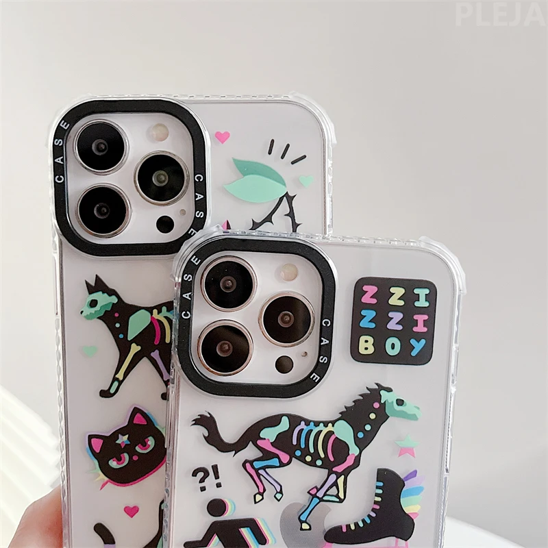 Модный милый чехол для телефона X-ray Horse Cat для iPhone 13 Pro 12 11 Pro Max X XR XS Max, угловой бампер, Защитные Мягкие Чехлы