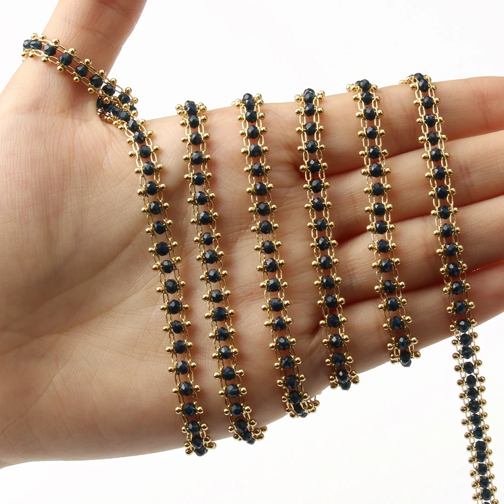 Горячая продажа 1 м золотой цвет нержавеющая сталь бисерная цепочка с кристаллом Модные мужские и женские для изготовления ювелирных изделий DIY Ожерелье Браслеты
