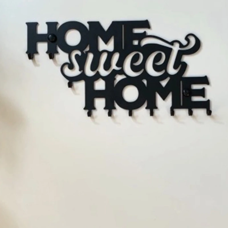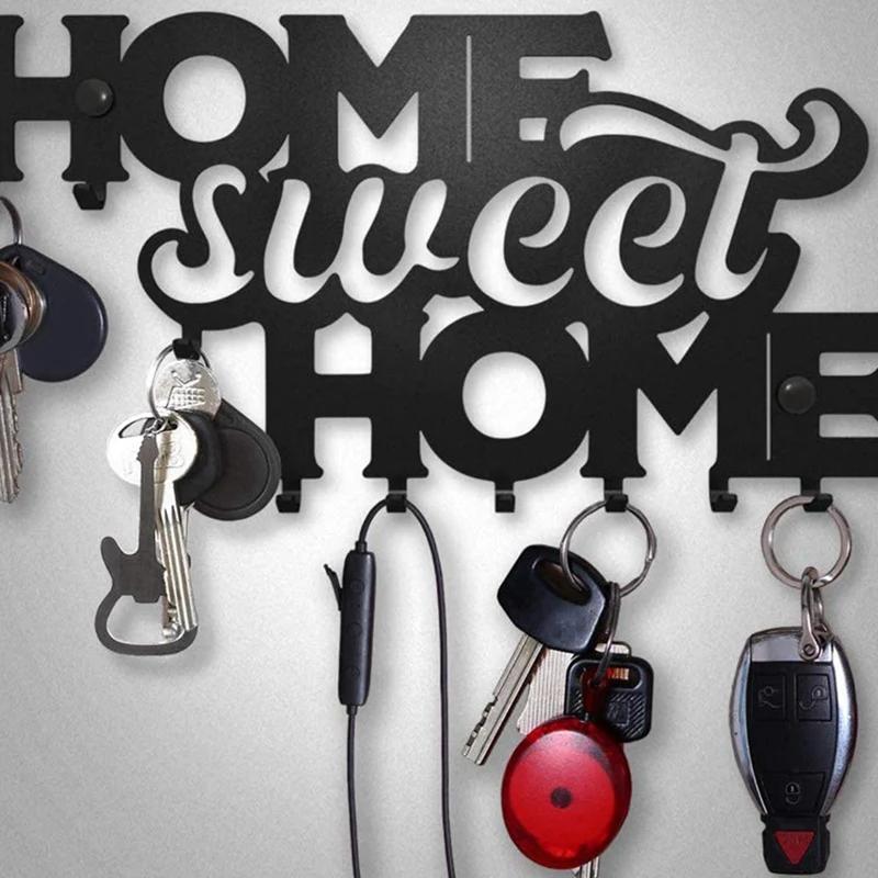 Милая домашняя черная металлическая вешалка для ключей, подвесная стойка для домашнего декора стен, передней двери, кухни и спальни