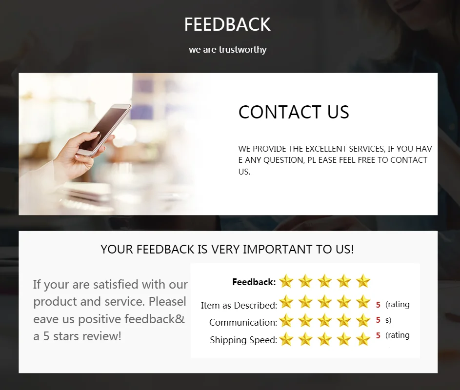 Мы предоставляем дропшиппинг и оптовое обслуживание. Если вам нужно, пожалуйста, свяжитесь с нами!