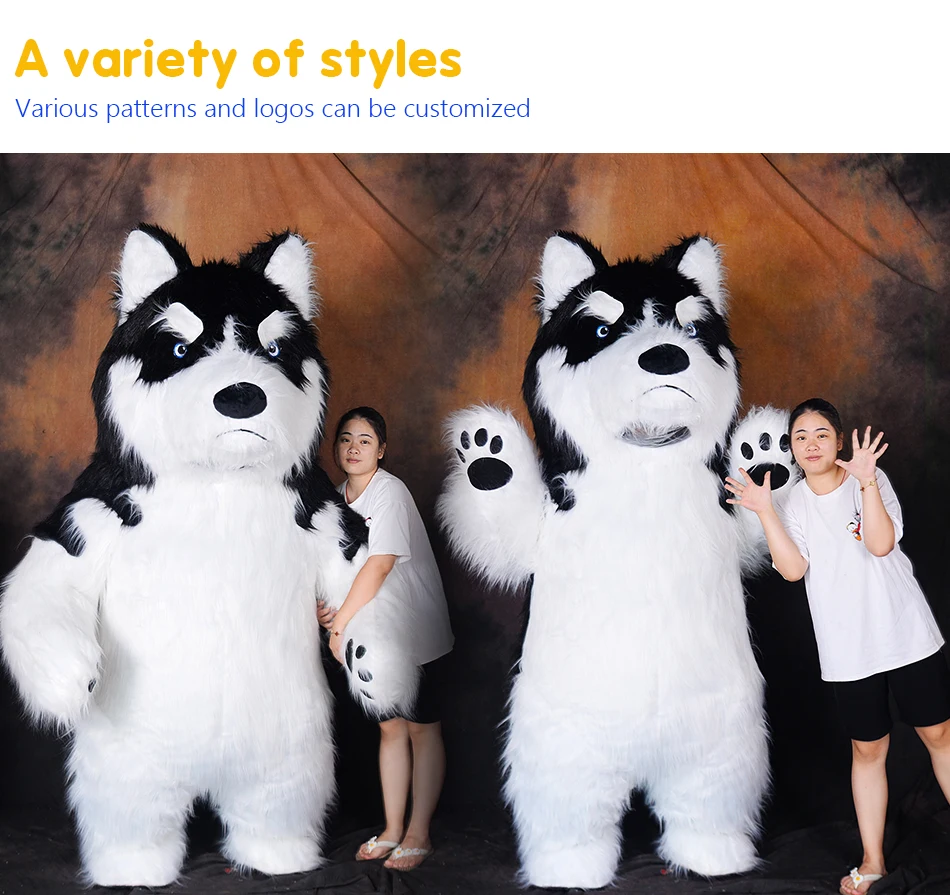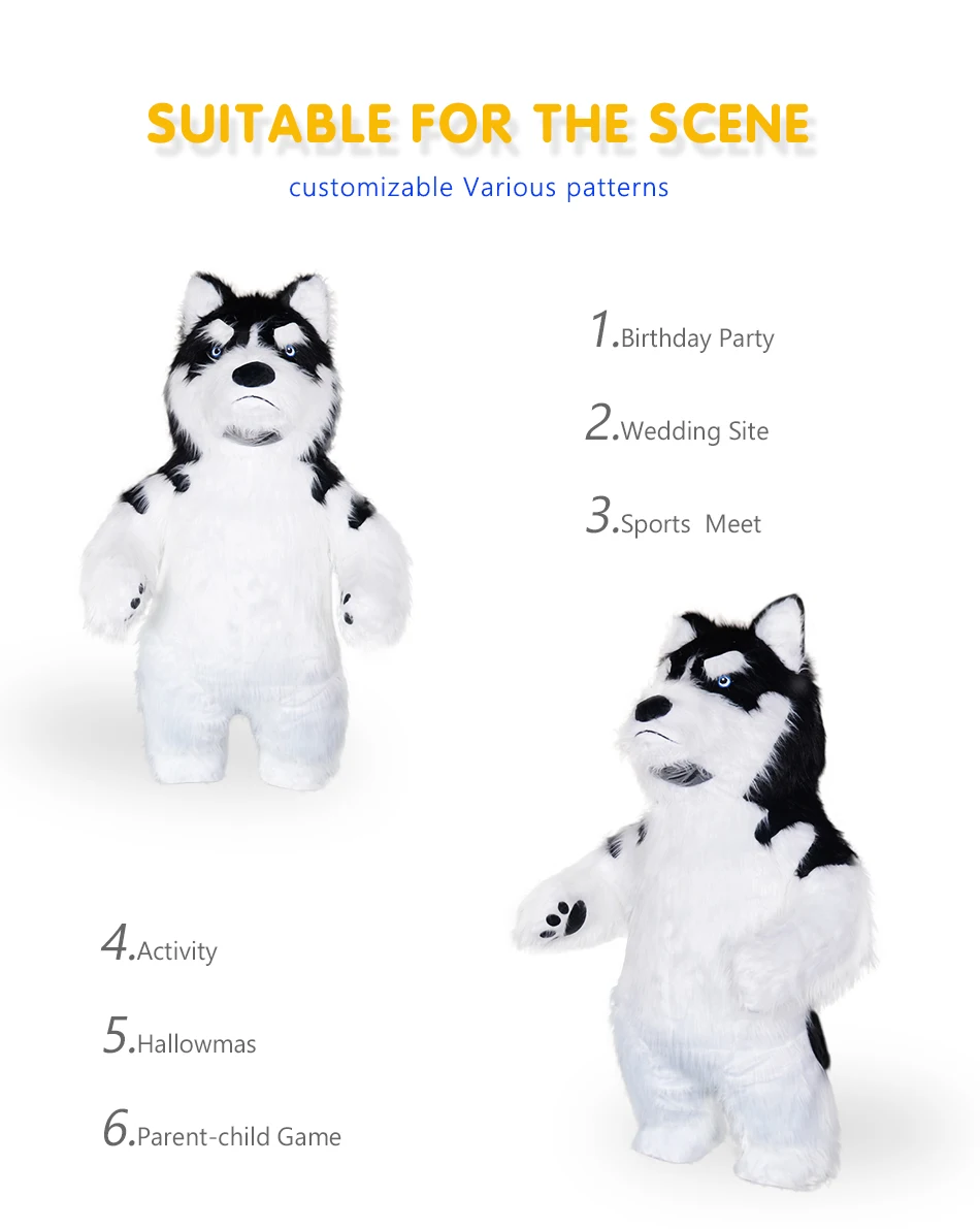 Хаски надувной костюм талисмана собаки Косплей смешной удар костюм вечерние пушистый костюм животных Хэллоуин костюм для взрослых 2 м высокий