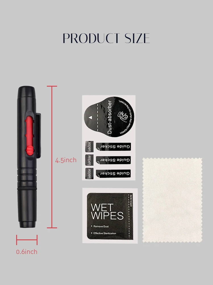 Один конец-мягкий материал для очистки пыли, а другой-Угольная щетка для очистки отпечатков пальцев. Средняя кнопка позволяет выбрать любой стиль кисти, чтобы свободно очистить объектив.