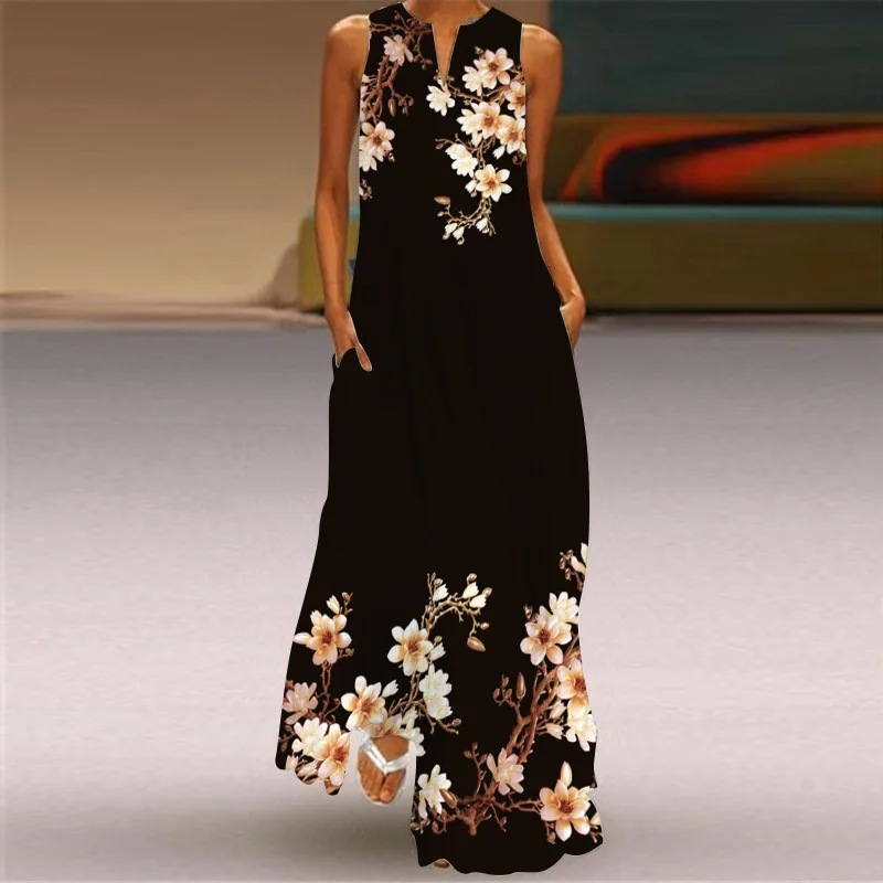 Женские платья лето 2022 Sezy v-образный вырез цветочный принт Бохо пляжное длинное платье женское без рукавов ТРАПЕЦИЕВИДНОЕ Макси платье элегантный сарафан Халат