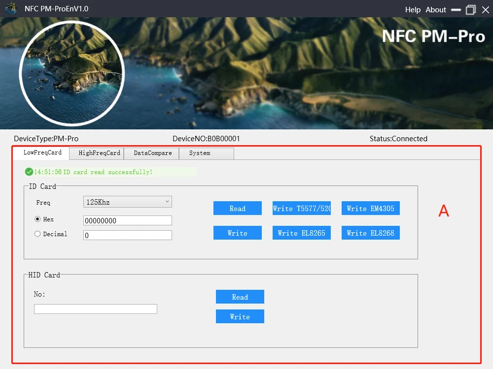 Считывание и запись удостоверений личности; Hid номер карты для редактирования, чтения и письма.
