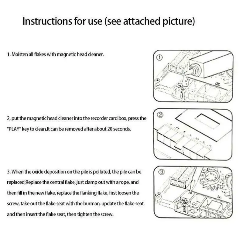 Использование: для восстановления магнитной головки кассеты и зажимного ролика, чтобы восстановить высокую точность и гладкость amovementof ленты для кассетного рекордера.