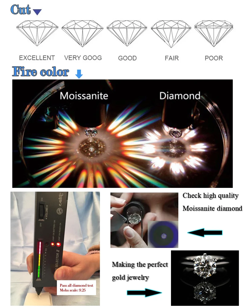 Известный за рубежом как самый Сияющий драгоценный камень в мире; Поэтому бриллианты Moissanite, такие как натуральные алмазы и Синтетические алмазы, никогда не изменят цвет и не выцветают, всегда ослепительно. Moissanite Diamond пользуется популярностью среди независимых модных женщин в Европе, Америке, Японии, Южной Корее и на других рынках и становится их любимыми ювелирными изделиями.