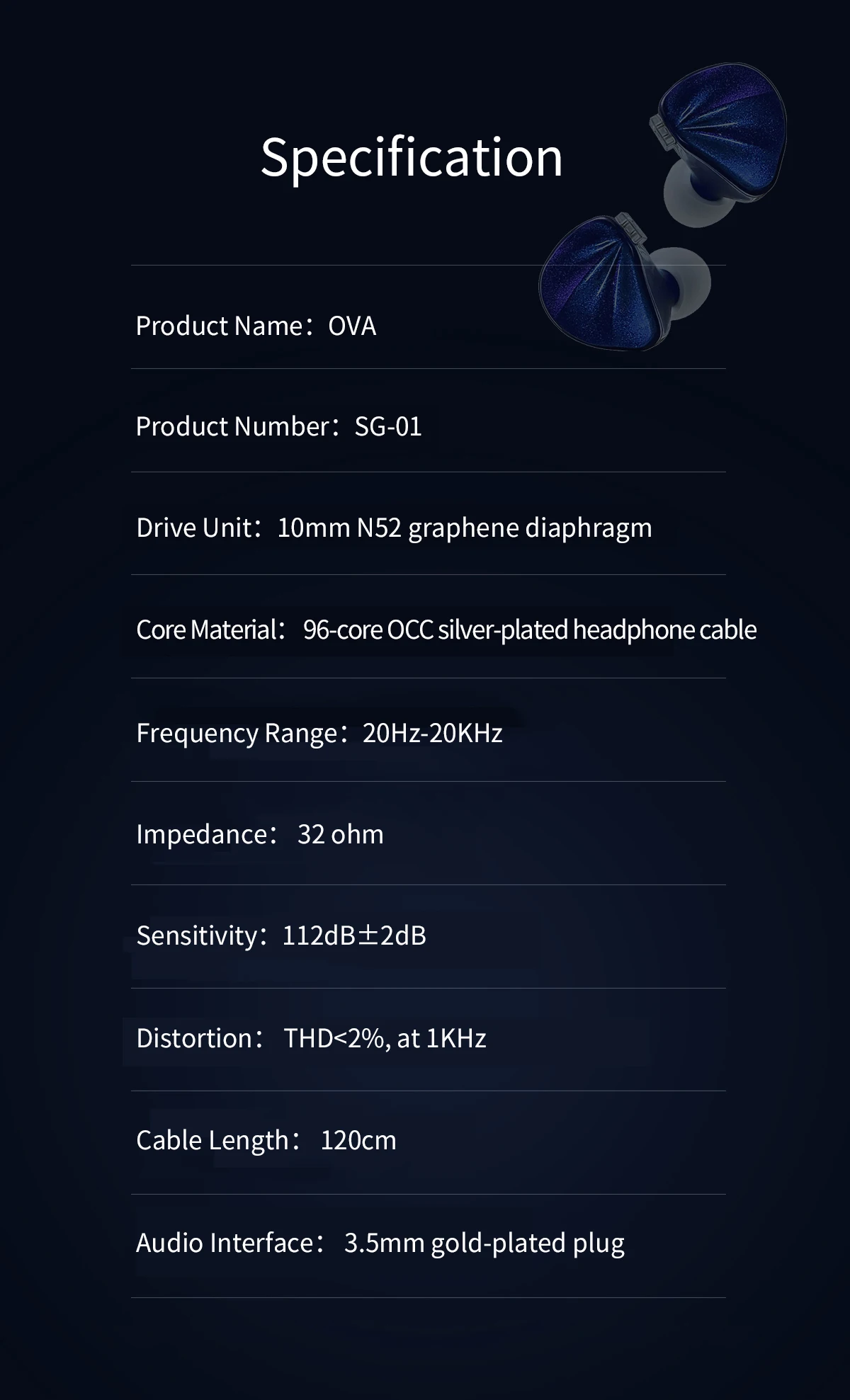 Наушники Reecho SG01 OVA HiFi в ухо с 10 мм N52 графеновой диафрагмой 2Pin съемный кабель IEM OCC посеребренный провод с сердечником