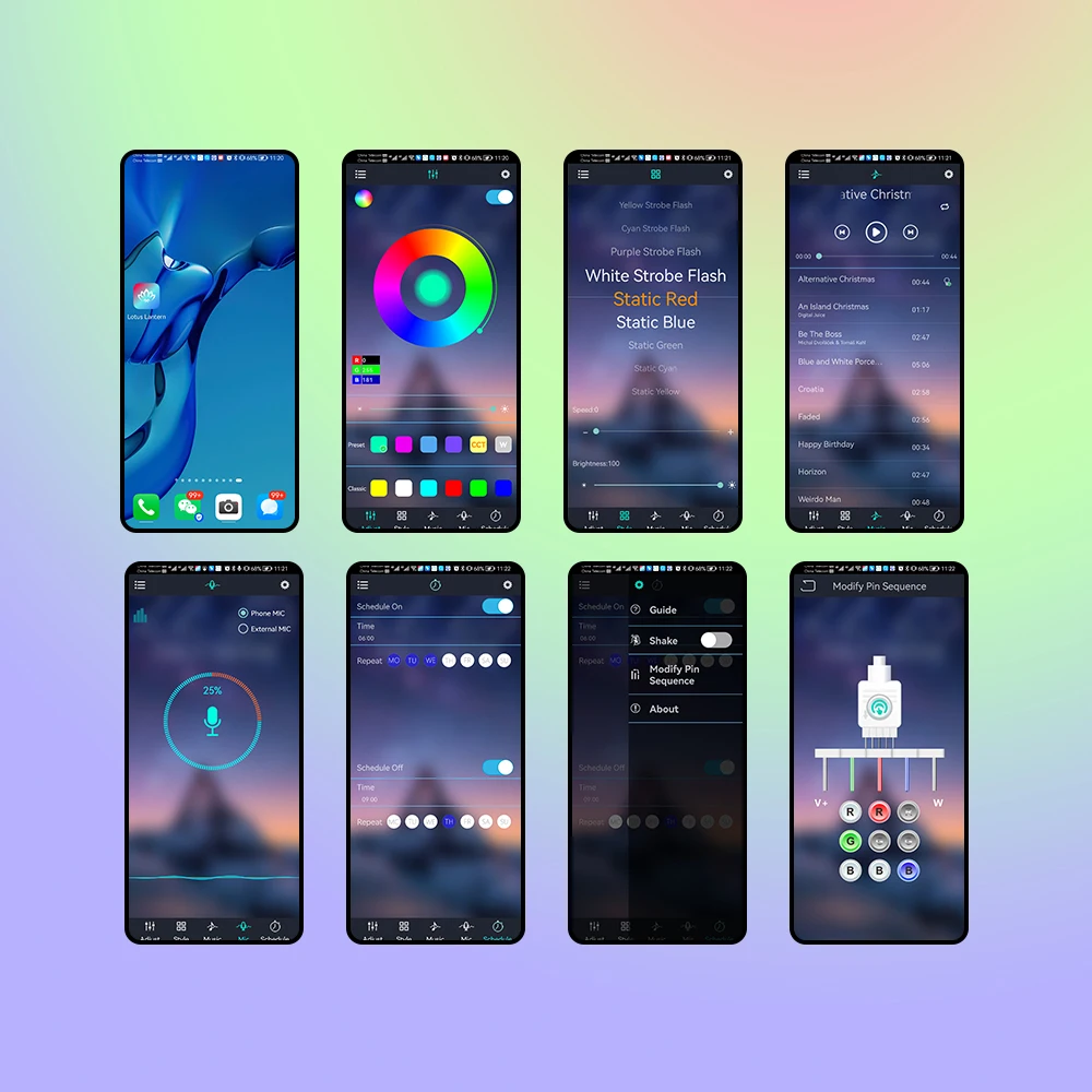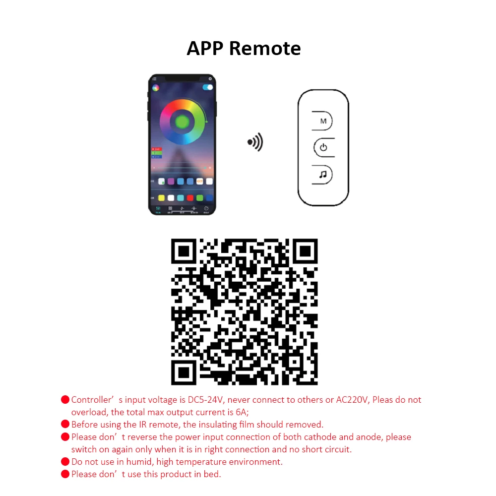 Между тем вы можете настроить яркость, статические цвета и изменение цвета с помощью ИК-пульта дистанционного управления