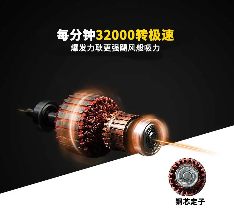 【 Устройство контроля температуры 】Тепловой протектор установлен 115 ℃, привязать на статор обмотки, эффективно защитить двигатель, после достижения 100-115 ℃, мощность для защиты двигателя. После ожидания охлаждения температуры намотки перезагрузите выключатель питания очистителя,