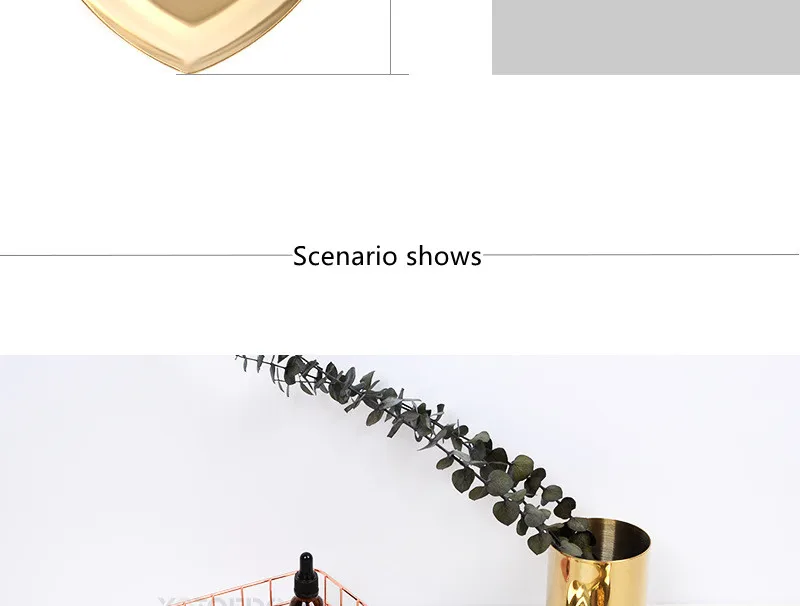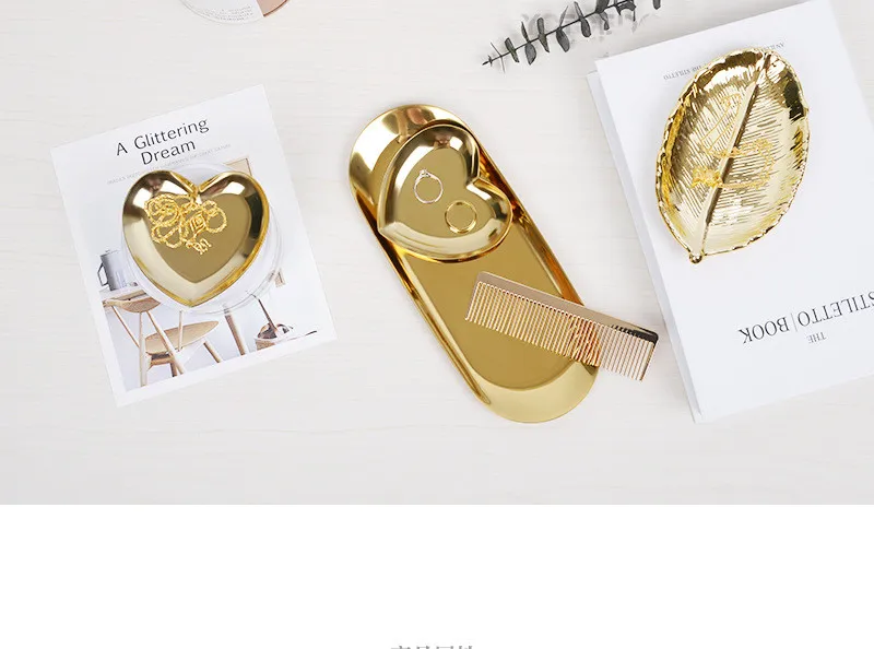 Лоток в скандинавском стиле, изготовленный из высококачественной пищевой нержавеющей стали, имеет простой и элегантный дизайн, гладкие линии и с деликатным гальваническим процессом, блеск очень хороший, И его можно использовать для хранения повседневных ювелирных изделий или в качестве домашнего украшения. Классическая золотая серия, обтекаемая форма и зеркальная отделка из нержавеющей стали делают весь дом полон скандинавской атмосферы.