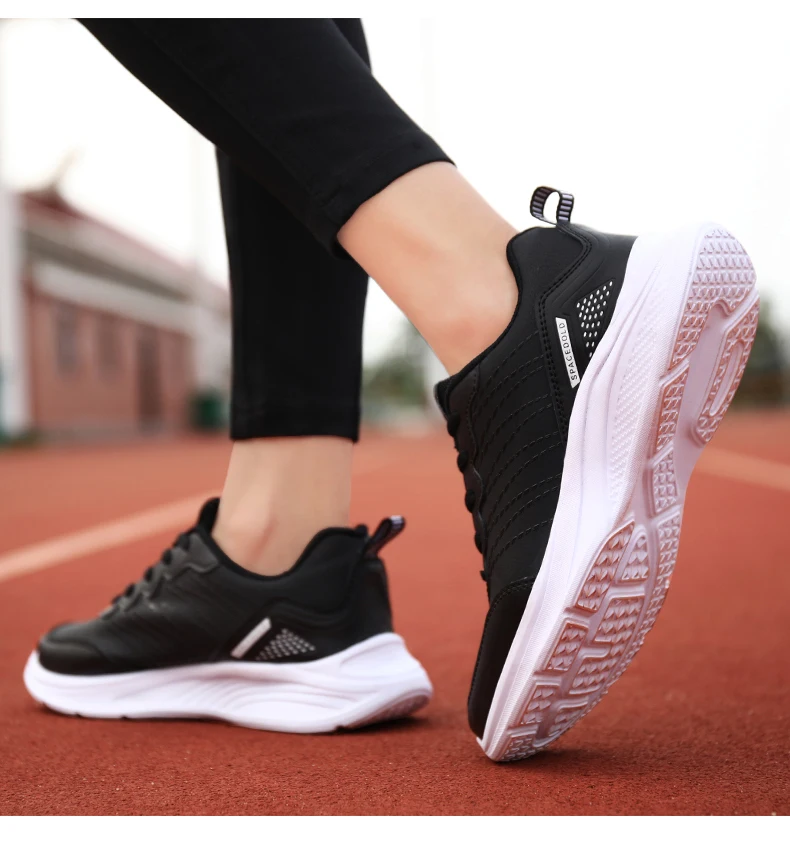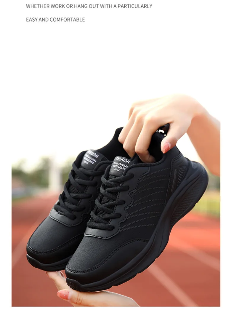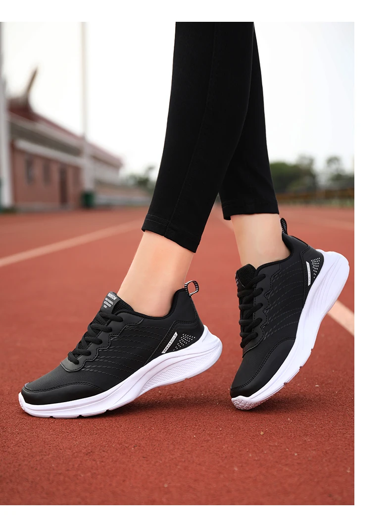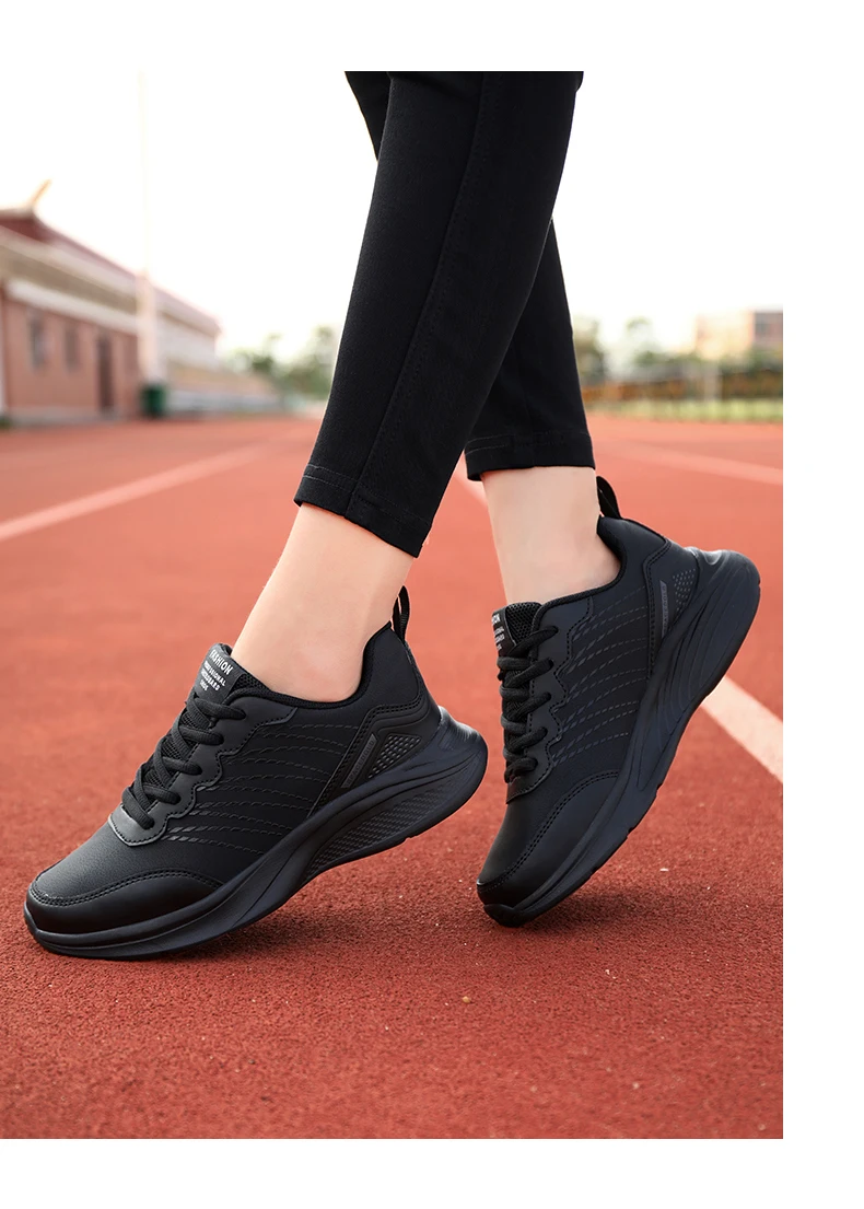 Женская обувь для бега; Водонепроницаемые весенние кожаные повседневные спортивные черные женские кроссовки на массивном каблуке; Кроссовки; Zapatillas Deporte Mujer
