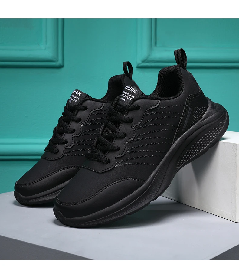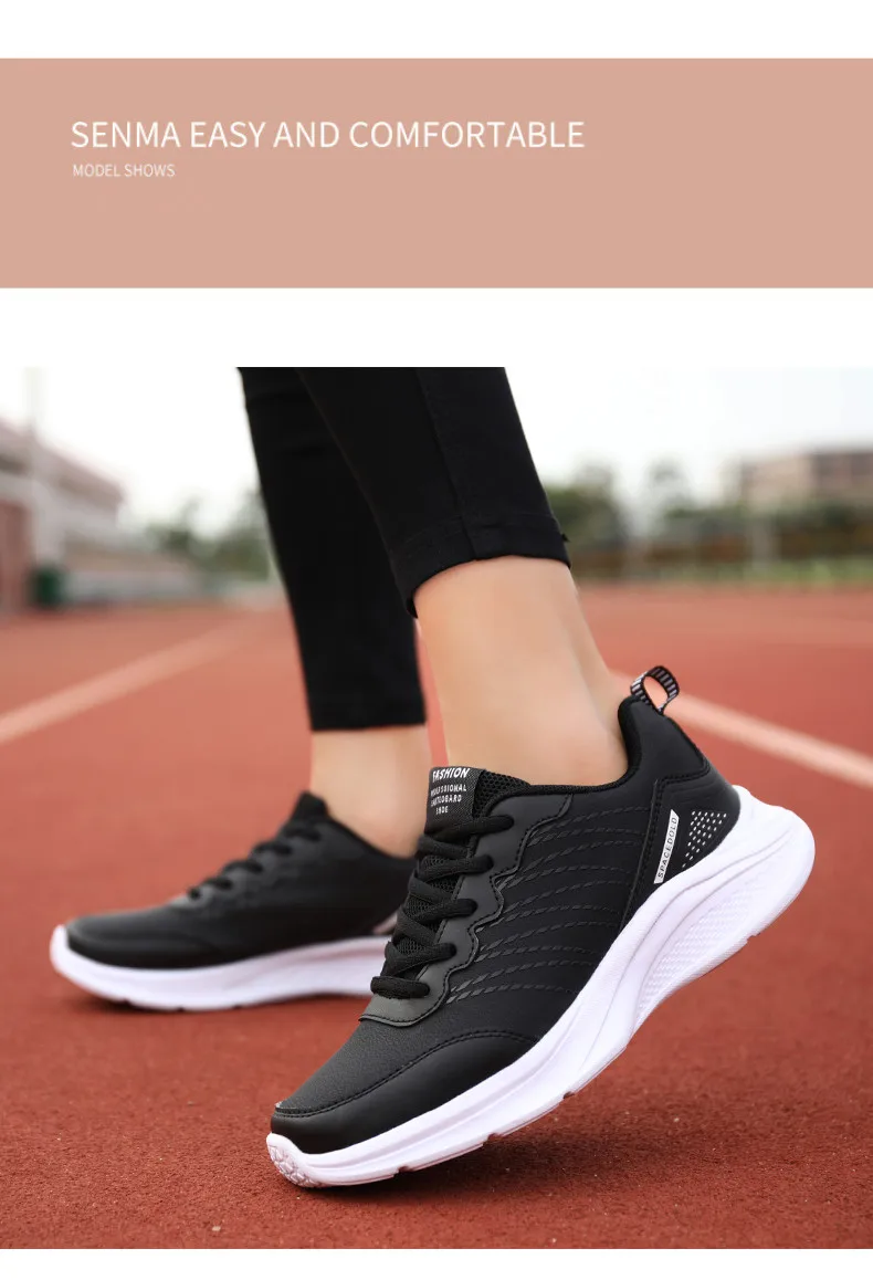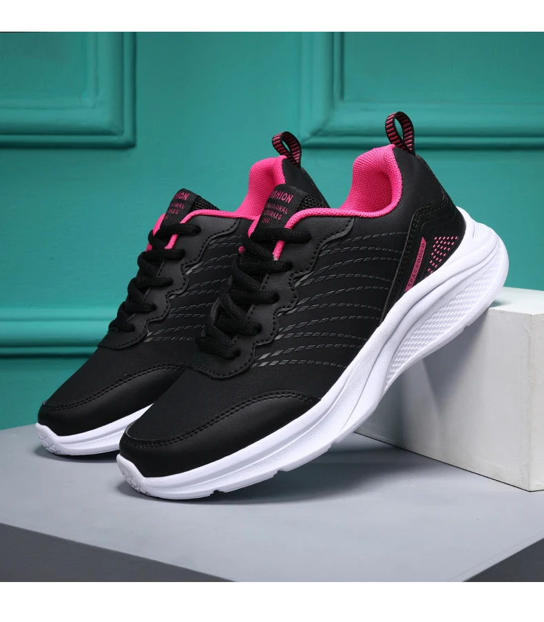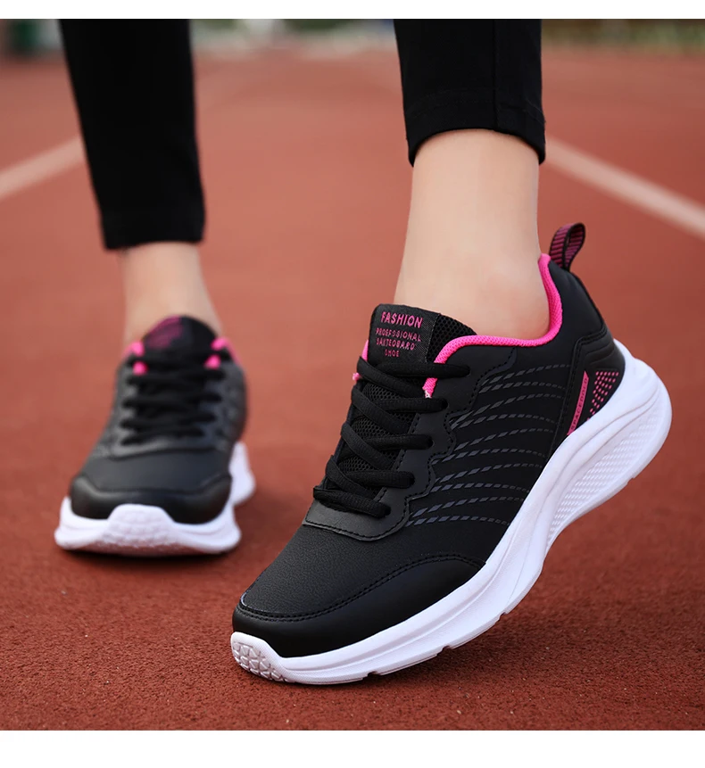 Женская обувь для бега; Водонепроницаемые весенние кожаные повседневные спортивные черные женские кроссовки на массивном каблуке; Кроссовки; Zapatillas Deporte Mujer