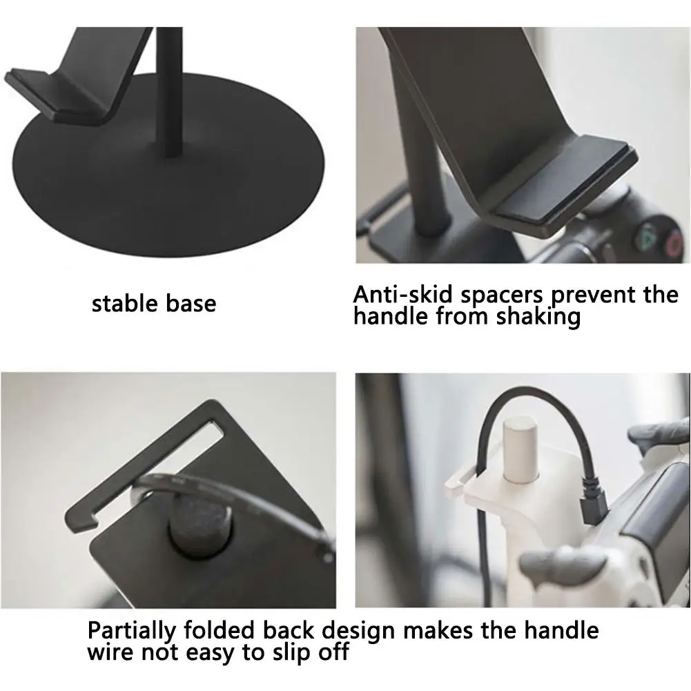 1. Настольная Специальная подставка для контроллера стабильности: 3 крючка оснащены нескользящей резиной, чтобы предотвратить скольжение. Силиконовая накладка в нижней части подставки контроллера обеспечивает превосходное сцепление с гладкими поверхностями. Мягкая резиновая крышка спереди обеспечивает мягкий контакт с аксессуарами Вашего устройства, предотвращая появление царапин и выскальзывание при наклоне к устройству.