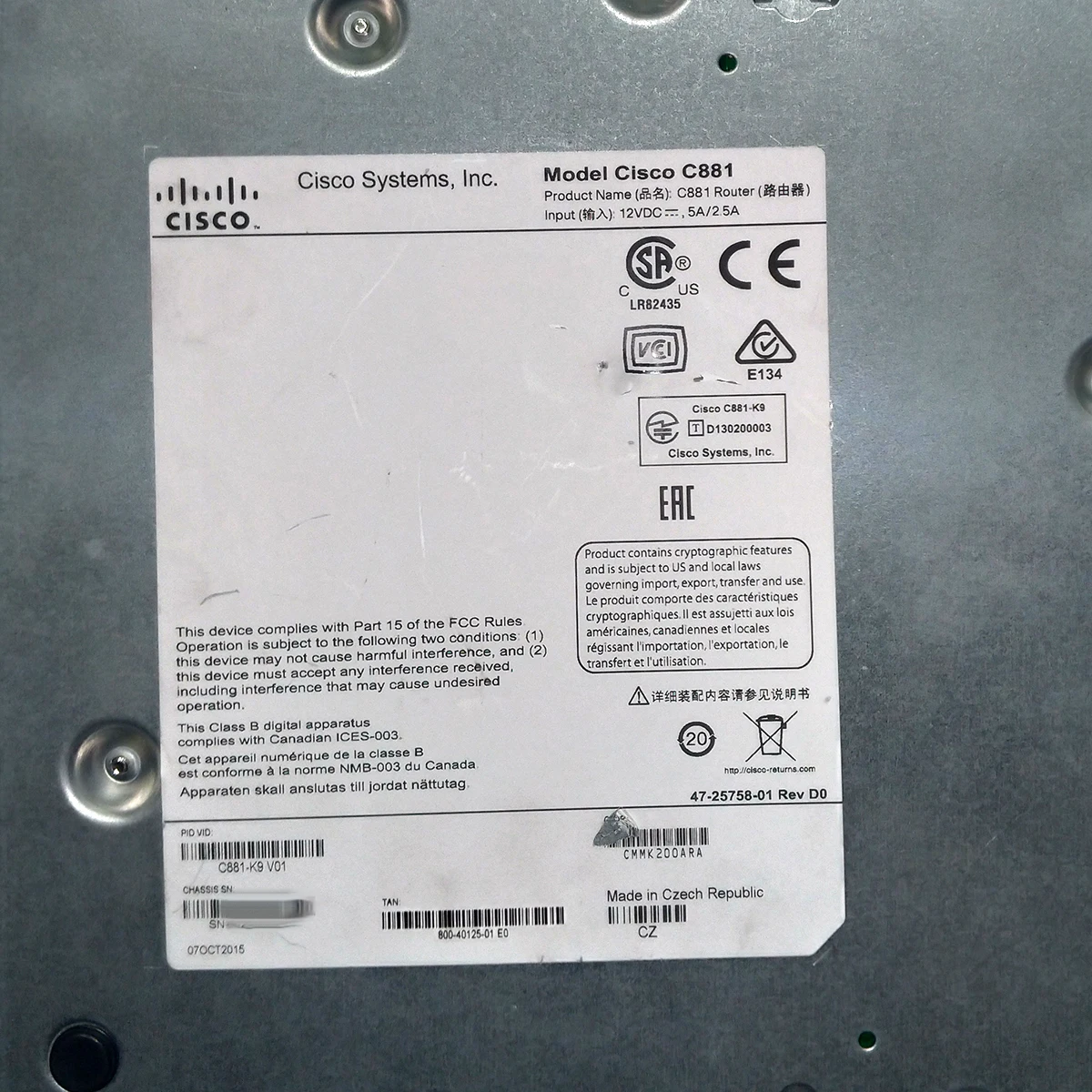 Маршрутизатор роутер Cisco 881 K9 V01