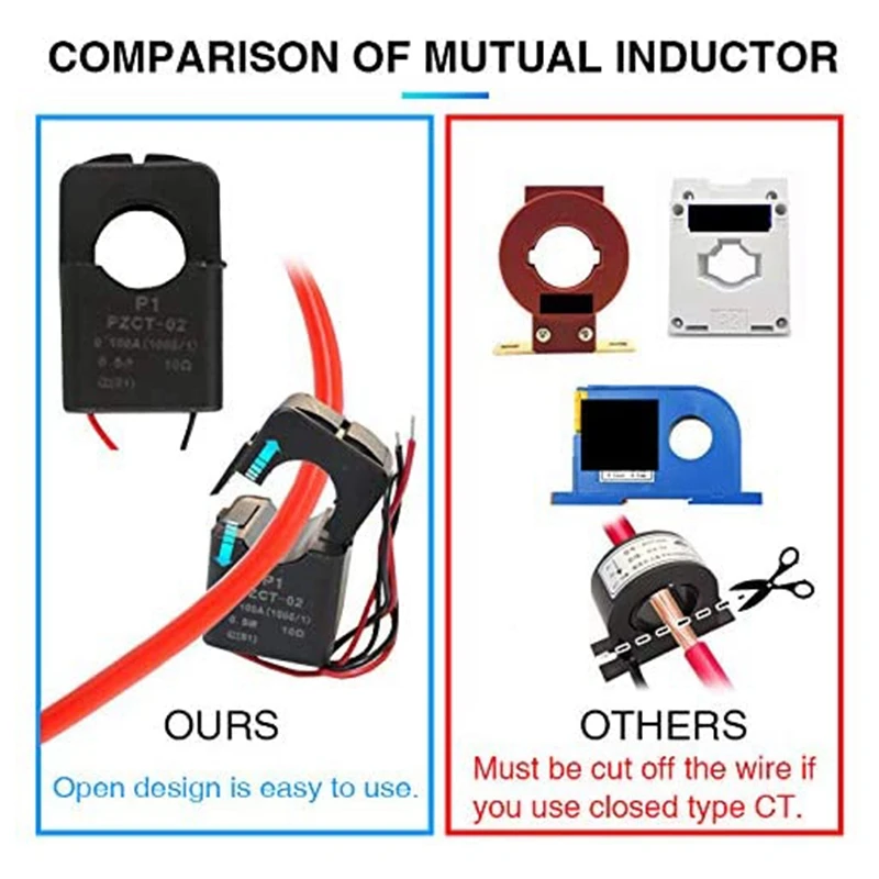 Цифровой мультиметр: Этот измеритель мощности может измерять и отображать напряжение тока активная энергия Частота энергии и коэффициент мощности в то же время. С разделенным трансформатором тока, более удобно установить.